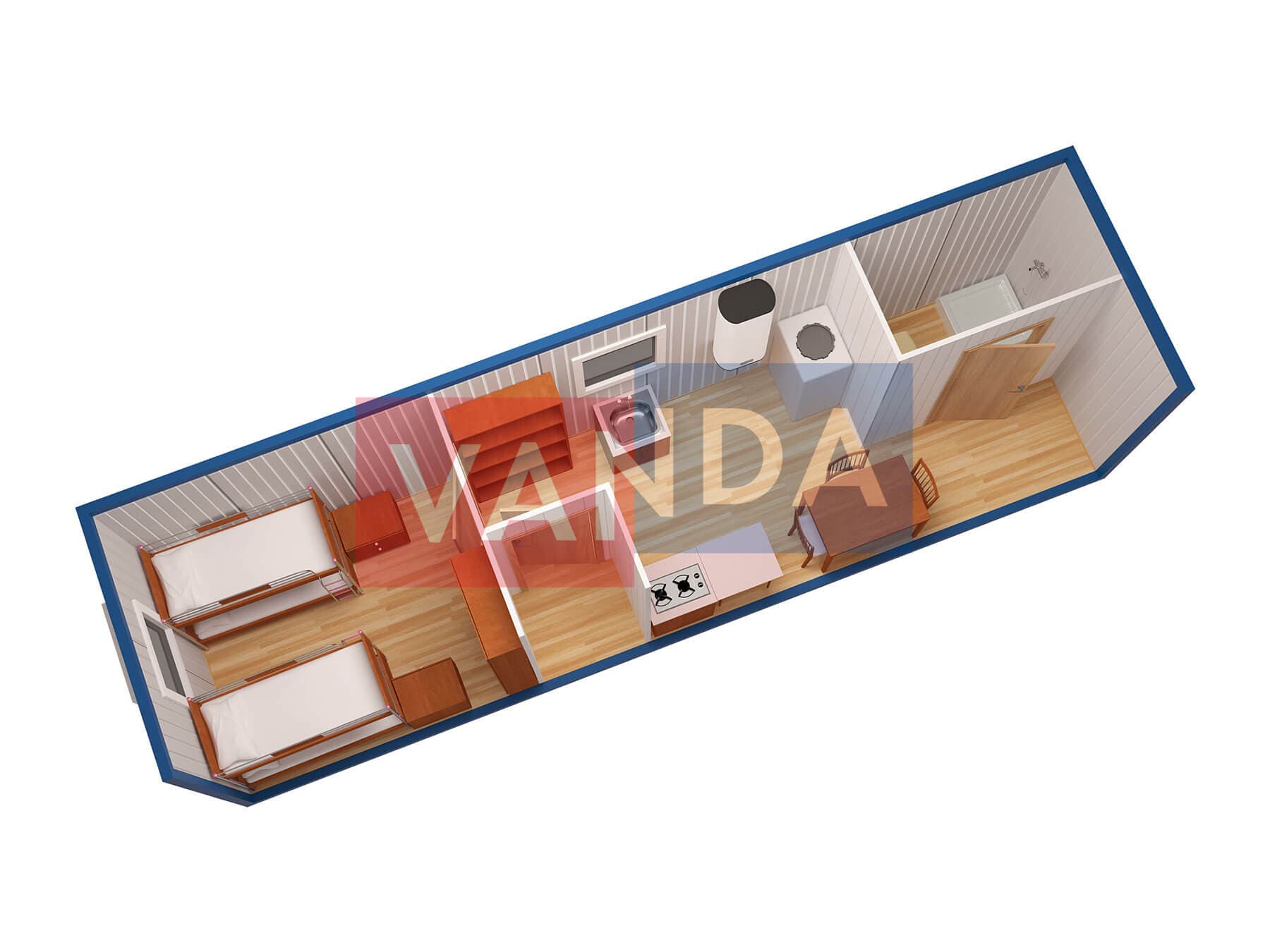 Металлическая бытовка без тамбура 5,85 x 2,4 - Вагонка деревянная